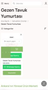 Gerçekleşen: Butona tıklandıktan sonra sepete ekle ve var olmasına rapmen tekrardan whatsapp sipariş butonun ürün kartına gelmesi ve gelen butonların tasarımsal olarak uygun değil.